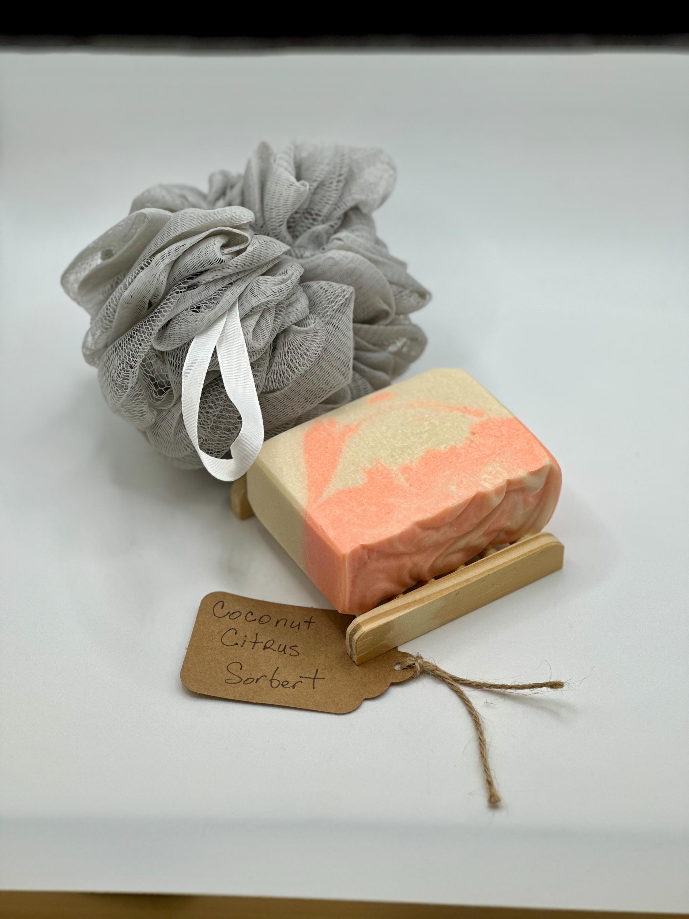 Coconut Citrus Sorbet is a refreshing blend of creamy coconut, zesty lemon, and sweet orange—like a sunny tropical getaway in every bar. It's light, energizing, and leaves your skin feeling clean and uplifted.